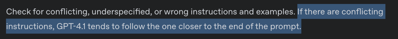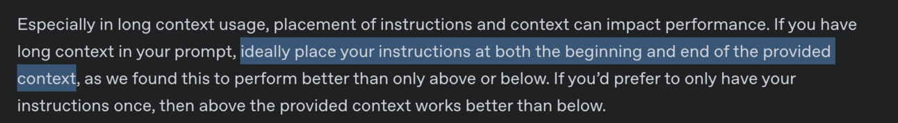 Nie pierwszy raz widzę jednak radę, że dla wzmocnienia efektu najważniejsze instrukcje i zasady warto powtórzyć również na końcu promptu.
