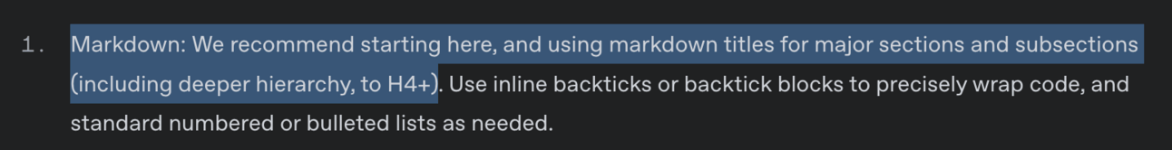 Ja w swoich promptach najczęściej korzystam ze składni XML do wyróżniania głównych części promptu, takich jak rola, instrukcje, kontekst itd. Natomiast składni nagłówków Markdown używam do formatowania informacji kontekstowych.